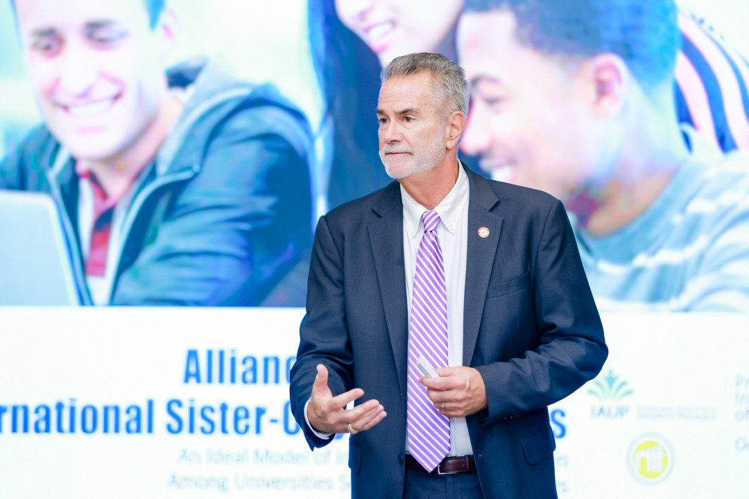 广州国际友城大学联盟秘书处执行主任、广州大学外籍专家史蒂夫·法尔(Steve Farr)向代表团介绍联盟的基本情况。