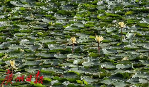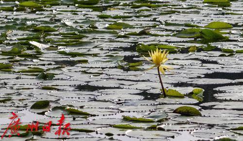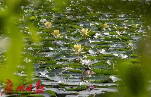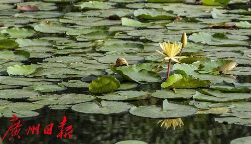10月21日,荔湾湖公园湖中的黄色睡莲正在盛开。当天广州天气多云到晴,温度为23℃到31℃。据气象部门预报,随着明后天新一股冷空气的到来,广州的最高温度将跌破“3”字头。