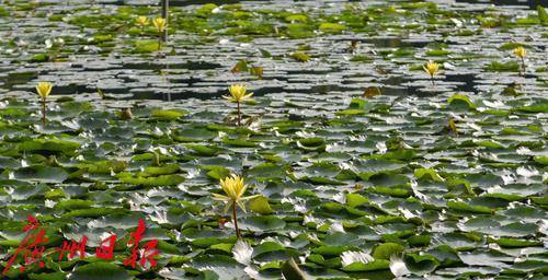 荔湾湖公园湖中的黄色睡莲正在盛开。