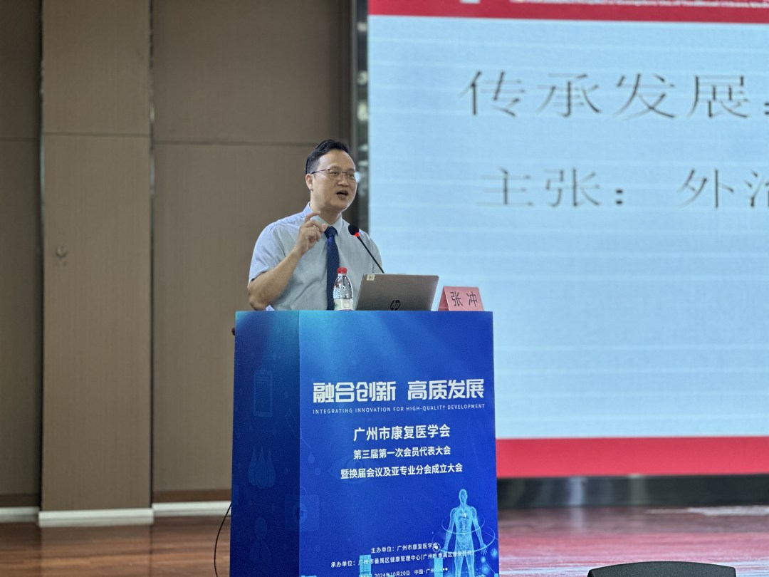 广州市康复医学会会长张冲发表致辞,他对广州市康复医学会重症康复分会的成立表示热烈祝贺,广州市康复医学会重症康复分会成立的目的是希望能提高康复医疗服务质量,并强调了重症康复在康复医学体系中的重要性。