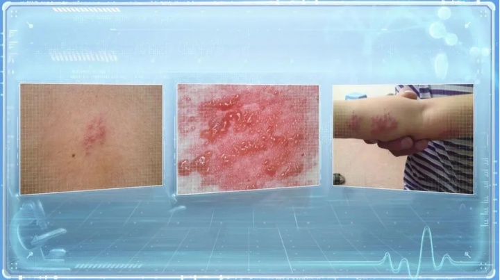 带状疱疹是由水痘带状疱疹病毒侵犯脊髓神经根引起的感染性疾病,皮肤表现以红斑、水疱为主,且伴有疼痛。身体任何部位都可发病,包括胸部、腹部及四肢,尤其当病毒累及头、面(特别是眼睛)时,症状最为严重。
