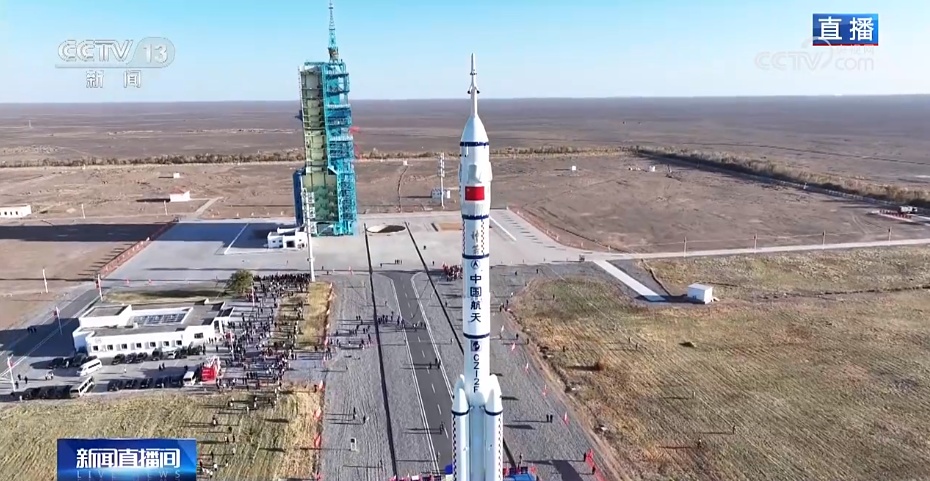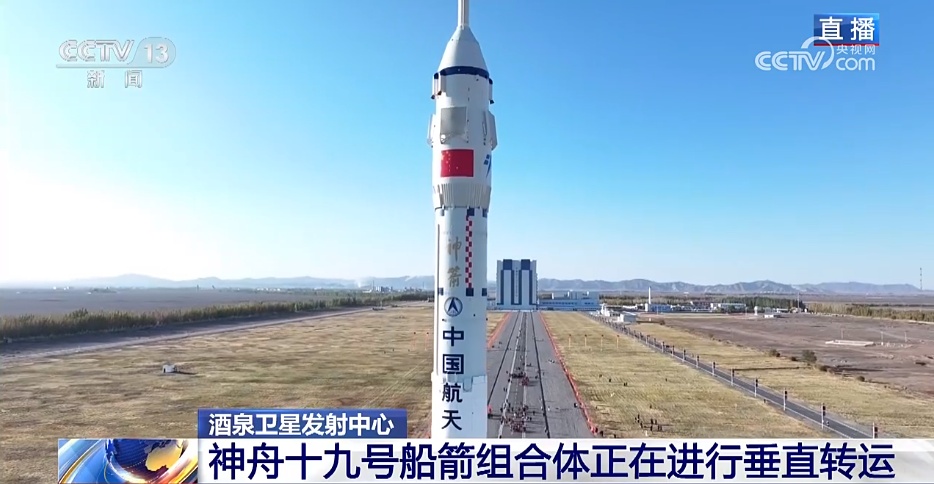 按照计划安排,我国将于本月底发射神舟十九号载人飞船。此刻,神舟十九号船箭组合体正在向发射区进行垂直转运。