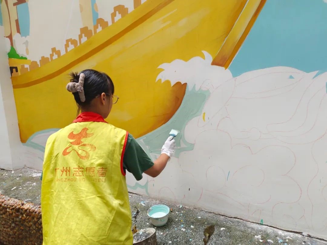 在2024年广州市越秀区海丝文旅周系列活动开幕前夕,广东省许钦松艺术基金会携手光塔街怡乐里社区和光塔街“双百工程”社工站,在社区招募了7名“小画家”,共同开展“古韵光塔,海丝映粤”海丝主题墙绘活动。