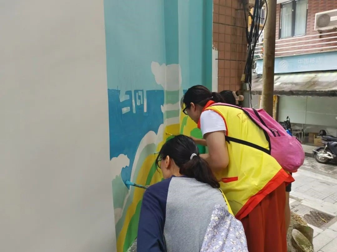 怡乐里社区是光塔街辖内海丝史迹最丰富最集中的宝藏社区。活动当日,7名“小画家”在专业指导下,用鲜艳的色彩和天马行空的想象力,将帆船、丝绸、瓷器、光塔等海上丝绸之路的元素生动地呈现在墙面上,古老的街巷焕发出新的活力。孩子们以童趣的笔触描绘出一幅幅充满历史气息的海丝画卷,社区文化根脉得以传承延续,社区也因这些艺术作品而焕然一新。