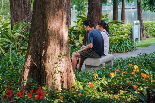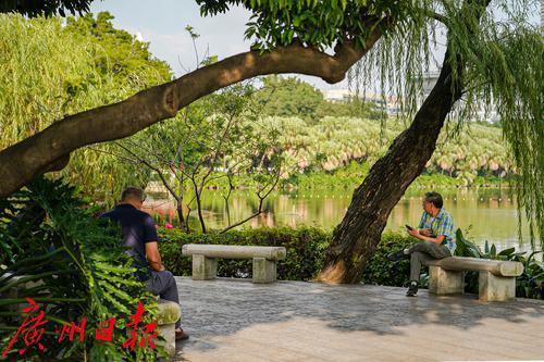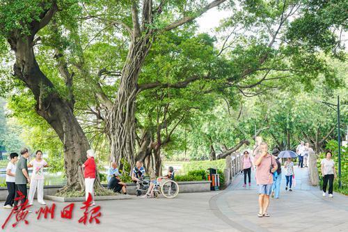 不少市民来公园里闲逛、闲聊,感受生活的美好,体验安逸闲适。