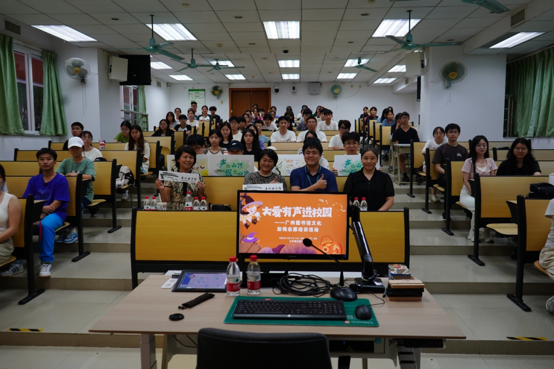 当天下午,馆员李芷筠、蔡东恺和星辰社曾海燕又来到广州大学校园举办一场别开生面的口述电影培训”大爱有声进校园“,近百名大学生们怀着好奇与热情参加了这场培训。培训拓宽了大学生的视野,引发大学生对无障碍理念更深层的思考。