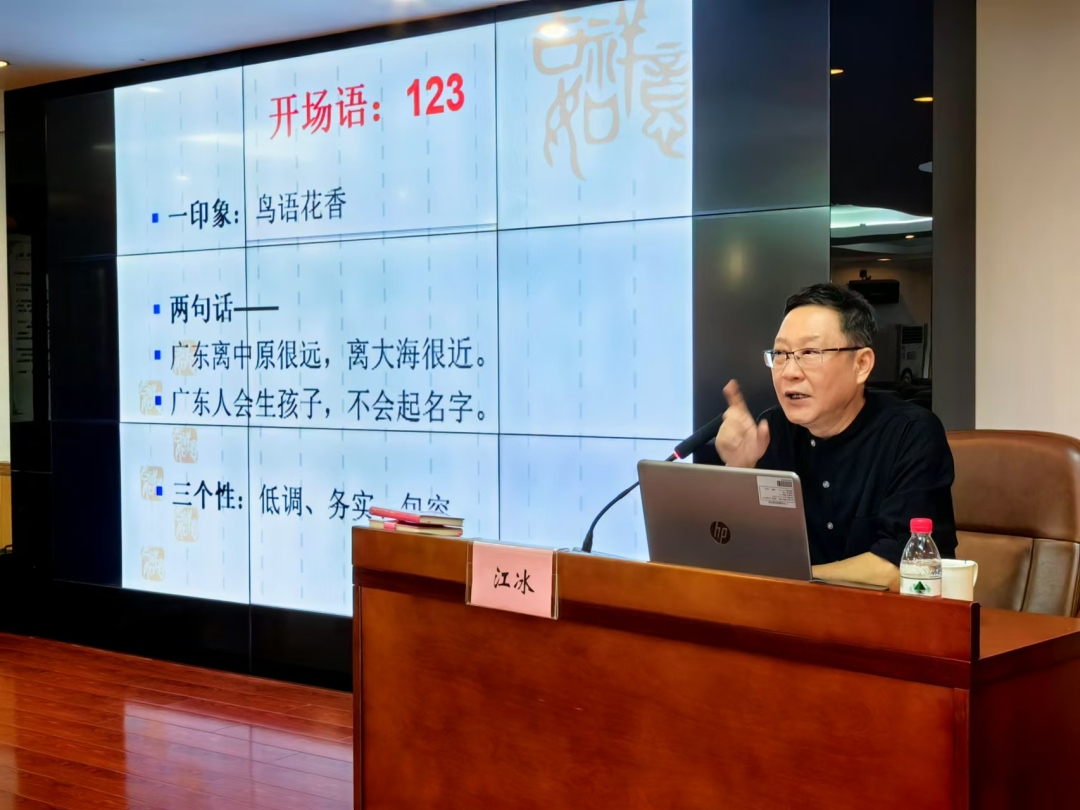 在江冰教授看来,了解广州,需要把广州放在岭南文化的背景下来看,从三点切入,“一是鸟语花香。鸟语是指广东人说话跟唱歌一样,同时也说明广东是移民大省,历代移民流动非常大。花香说的是季节,四季如春,遍地花香,五岭挡住了寒流,使得广东气候温润。二是广东离中原很远,离大海很近,海洋性是岭南文化的一大特点。三是岭南文化的个性,低调、务实、包容,广东人的性格有两面性,看上去不声不响,但有雄直之气,如三元里抗英。”