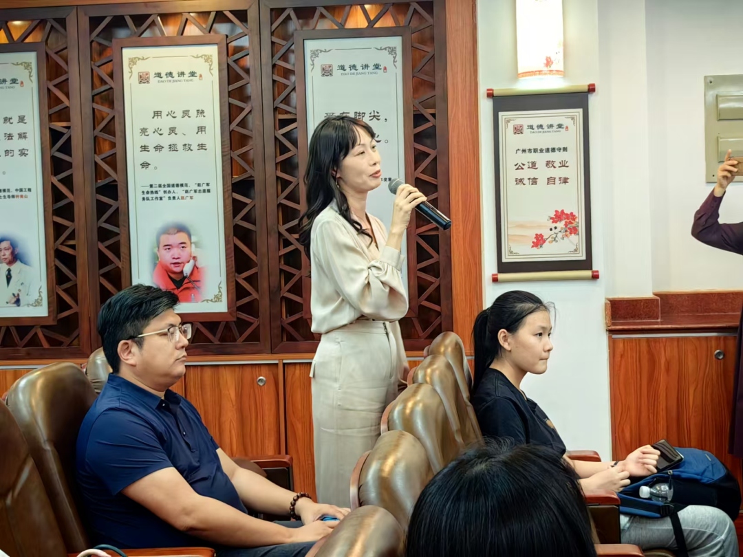 江冰教授的讲座内容丰盈,语言幽默,结合自身的经历和体验,以广州千年古道北京路为切入点,带领听众从历史文化、非遗文化、日常生活等角度读懂广州,娓娓道来,酣畅淋漓又接地气,引发听众的情感共鸣,现场不时掌声雷动。听众还和江冰教授热情互动,针对广州历史文化与广州精神各抒己见,出现全场共议广州文化的热烈场面。