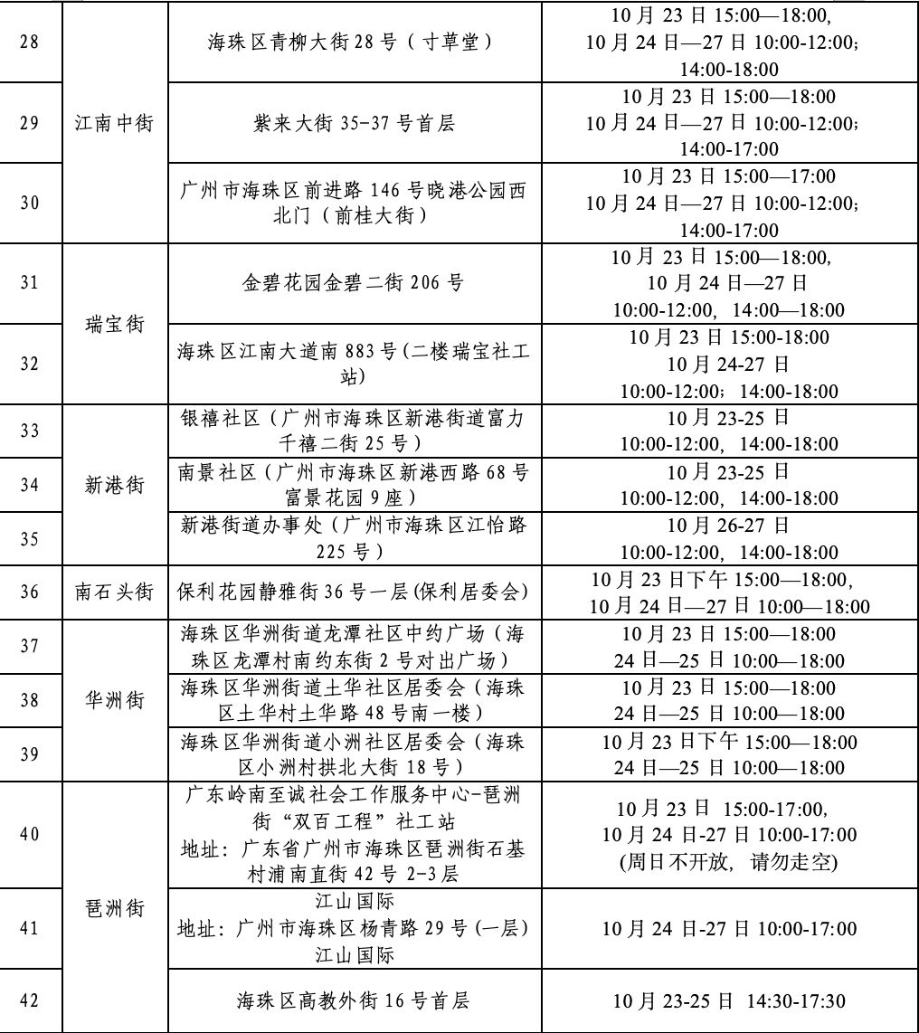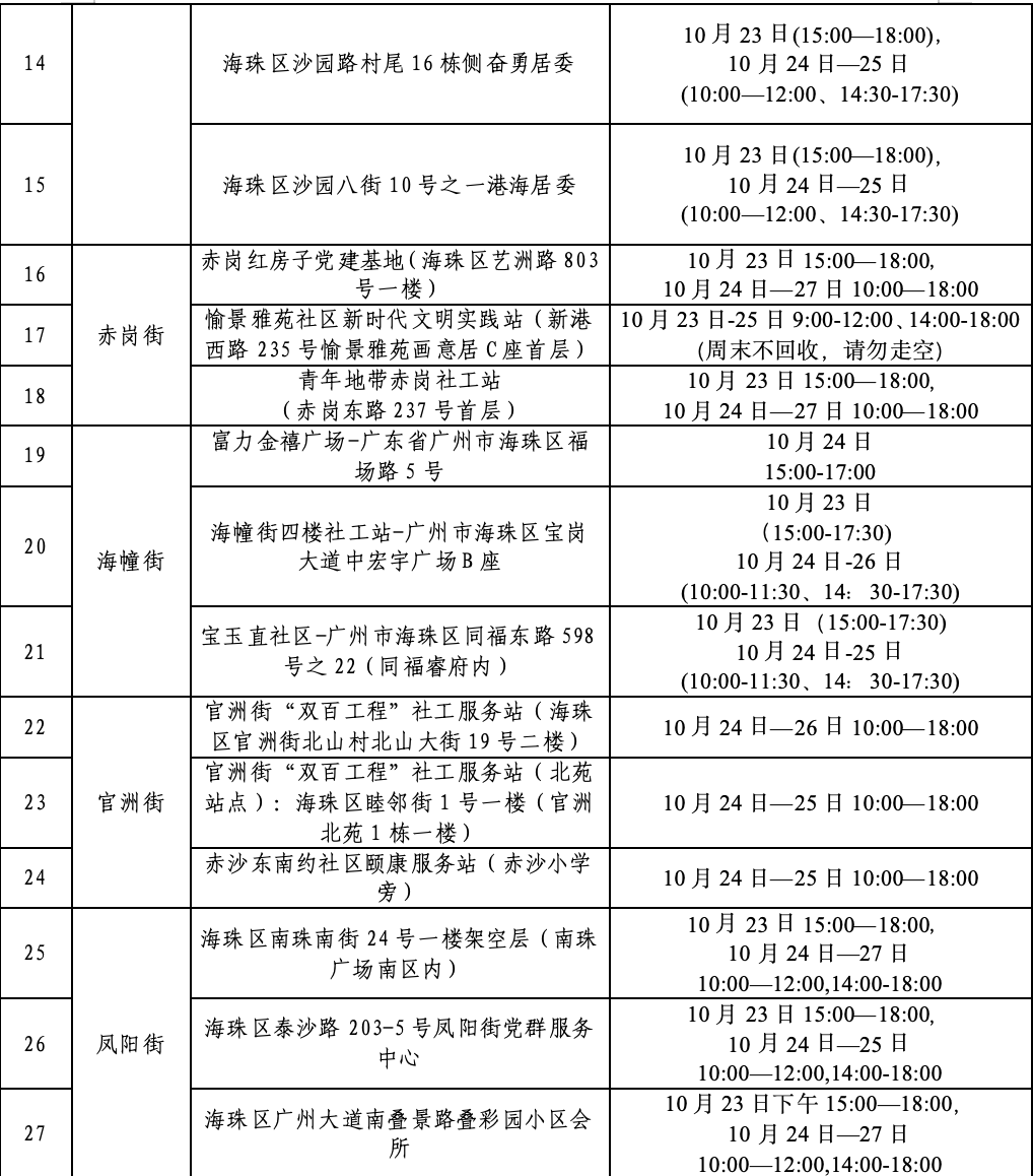 【海珠区各街道社区旧衣回收点】