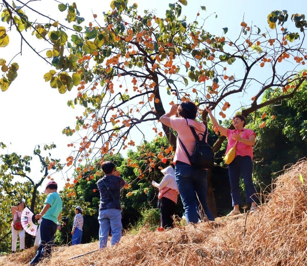 在江埔街上罗村,浓厚的果香弥漫在空气中,红彤彤的柿子挂满枝头,成为乡村的一道靓丽的风景线,吸引了不少游客前来打卡观赏。他们身着漂亮服饰,摆出各种造型,围着柿子树合影留念,祈愿着“柿柿”如意、心想“柿”成。