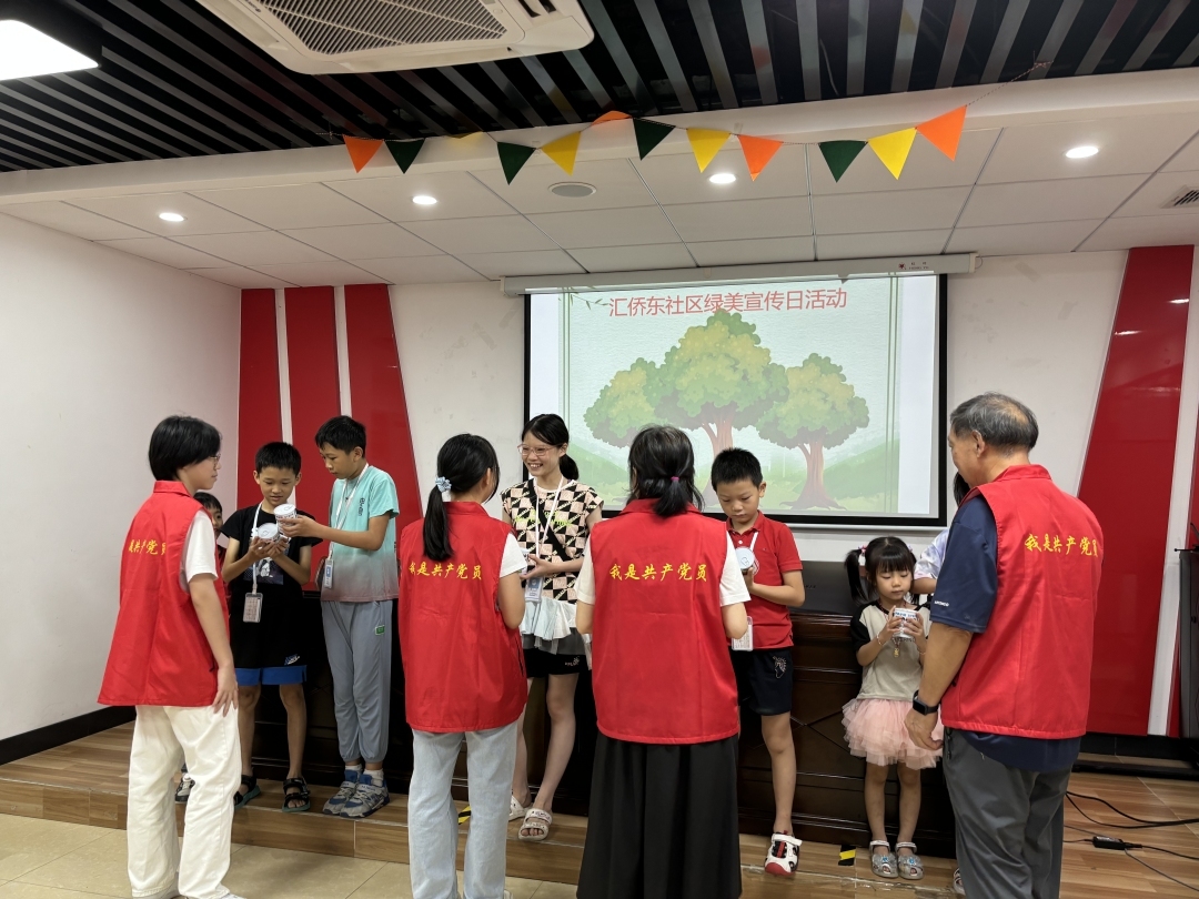 今年7月,新市街关工委联合汇侨东党总支、新市街社工站开展绿美宣传日活动。汇侨东社区党总支书记陈志贤以《一棵树、一株花、一片绿》为题向青少年作分享,将“党员先思、党员先议、党员先行”工作机制落到实处,以“大手拉小手 共建美好环境”的方式,不仅有效激发社区居民参与环境保护的热情,而且培育下一代护绿意识,向居民心头播撒“护绿”种子,融合多元力量推进绿美建设。