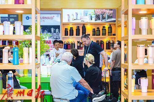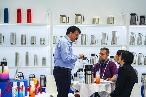 一家生产水杯的参展商的展位上,采购商坐下慢慢了解。