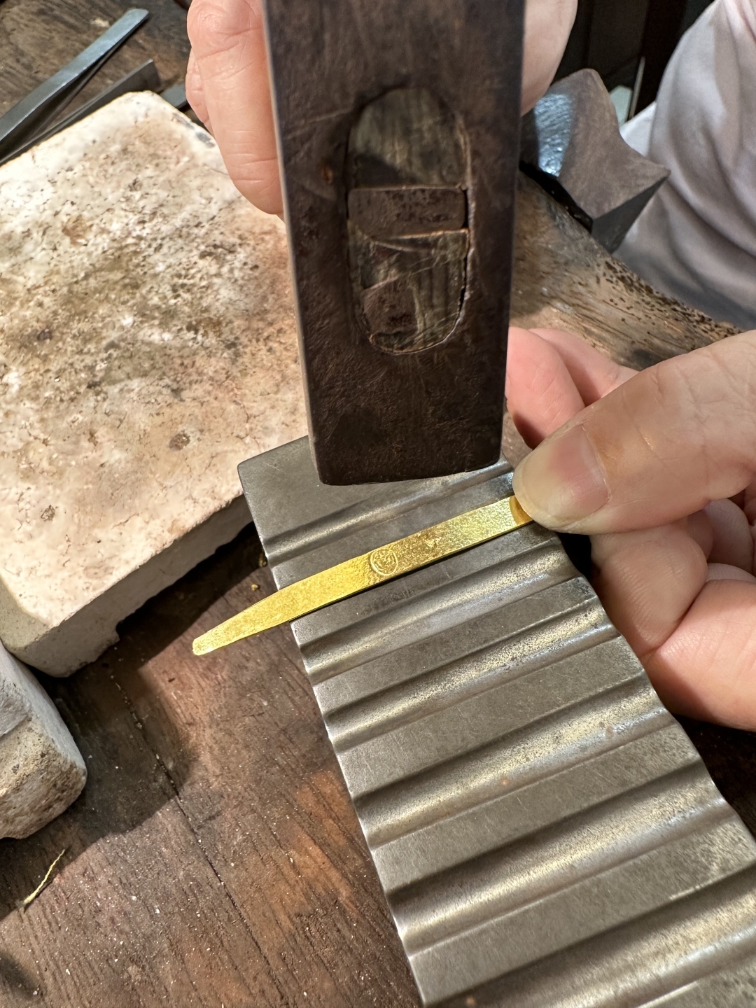 金银匠俗称“打金”,是指民间专门从事金银首饰加工制作的人。广州打金制作技艺是充分利用黄金的延展性通过铸造、錾刻、电镀、抛光等流程将其制成金饰的一门技艺。金银首饰贵金属的主体制作包括挫削、锤打、焊接、錾刻与抬压、镶嵌等工艺技术,每一个环节都需要工匠亲手操作,材料经过工匠严格的筛选和检验,确保其纯度、质地和韧性达到最佳状态。