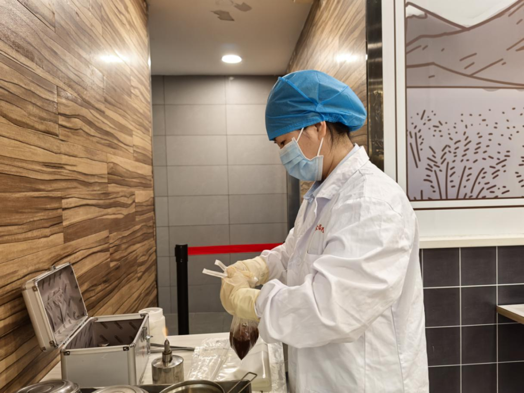 食品检验所工作人员对展馆内食品经营点的即食食品、食品经营点的自制饮品、食用冰粒等食品开展食品安全风险检测。