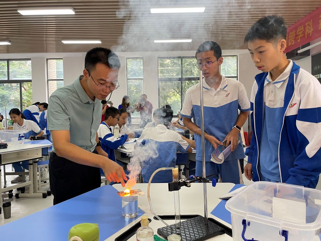 在化学课上,来自重庆巴蜀中学的陈静老师以火折子中蕴含的燃烧原理为引子,循序渐进地引导学生们深入探索,直至学生们亲自动手制作火折子,亲身体验这一古老技艺的魅力。陈静还巧妙地将火折子与现代火炬、火箭相联系,揭示了它们之间千丝万缕的联系,让学生们在实践中深刻体会到传统文化在现代社会中的重要价值与影响力。华英学校李孟彬老师巧妙地利用“卡式炉里的科学火花”,引领学生们从日常生活的细微之处迈向化学的奇妙世界,并最终跨越至工程设计的广阔天地,实现化学、技术与工程三者之间的融合与创新。