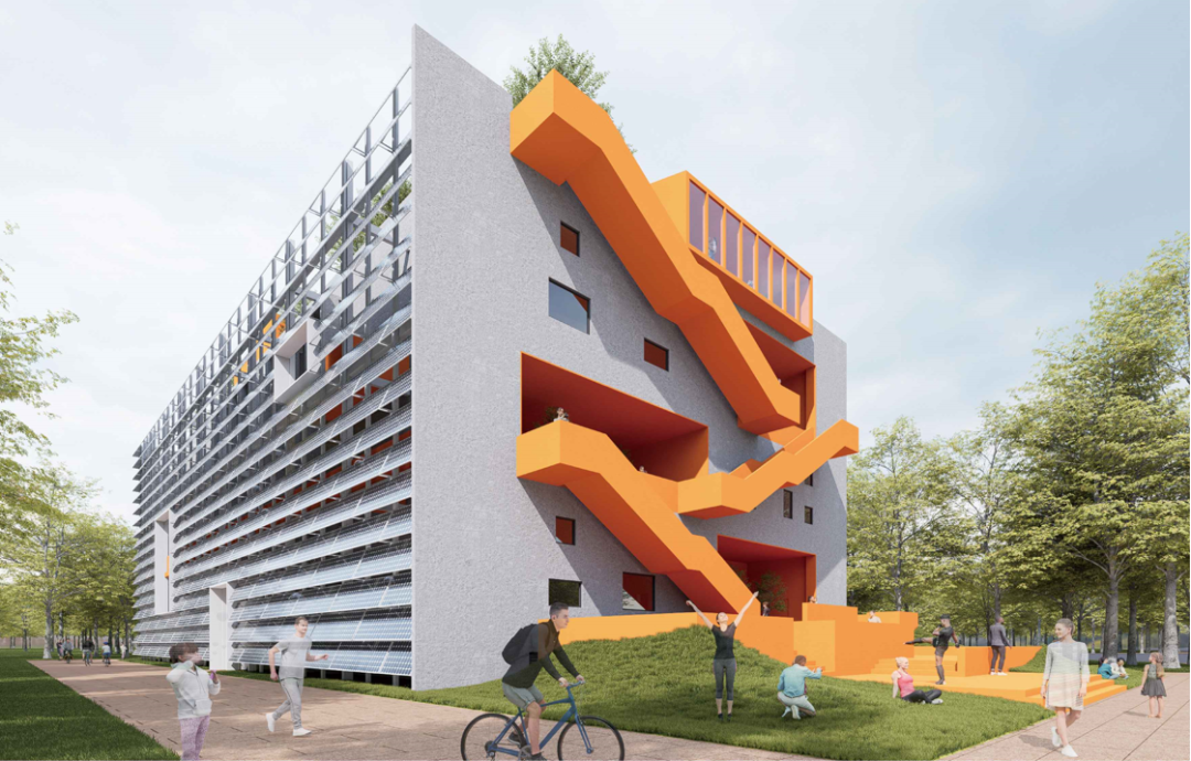 《能量绿洲》通过设置城市阳台与运河景观呼应,并利用吊装平台、露台和屋顶打造对公众开放的科普、休闲空间,形成一座开放的城市公园。
