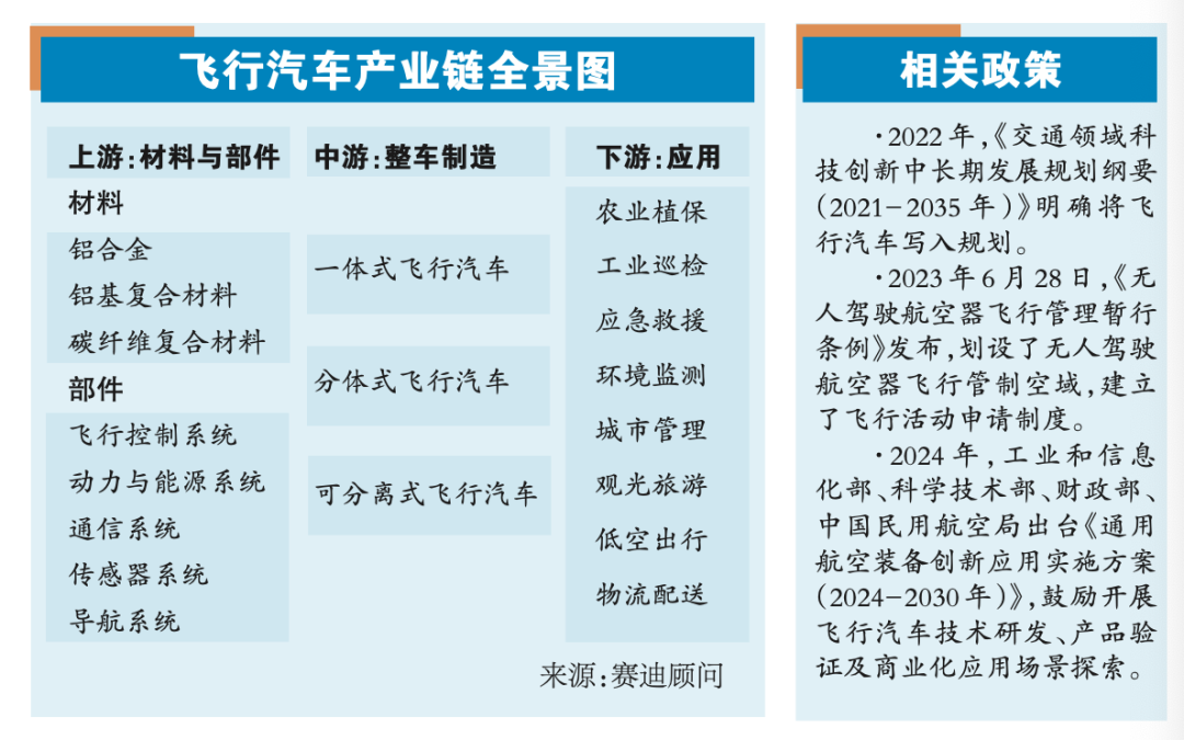 业内指出,解锁“低空赛道”的不只是无人机,飞行汽车等载人航空器等也纷纷发展创新。在众多低空经济的细分领域中,最引人注目的是eVTOL飞行汽车被越来越多国内外企业视为低空经济的主要运载工具。低空出行为人们拓展了视野,提高了通勤效率,打“飞的”的美好愿景逐步变为现实图景。