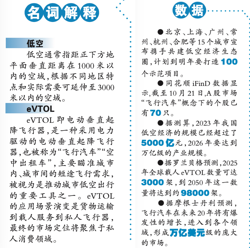 据不完全统计,中国国产已面市的eVTOL有20余款,同时同花顺iFinD数据显示,截至10月21日,A股“飞行汽车”概念下的个股已有70只。