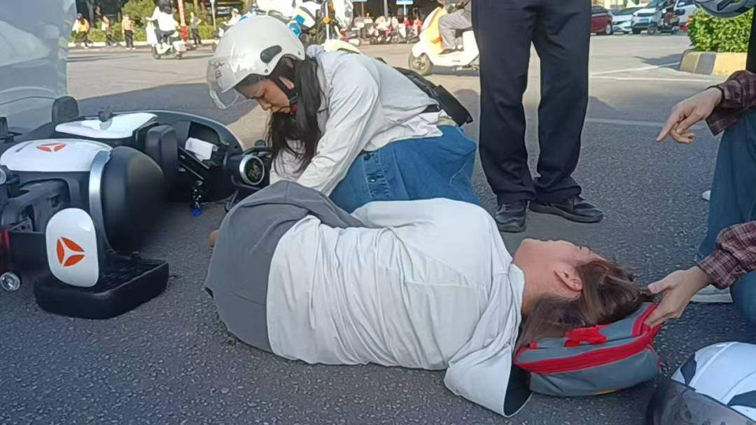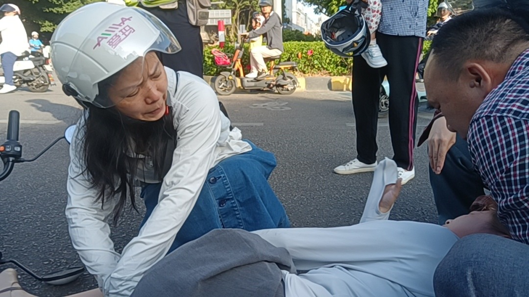 当天上午8点左右,罗雨琼正跟往常一样等待红绿灯准备过马路,这时候突然旁边传来“轰”的一声巨响,只见左手边一对母女骑着的电动车与从北侧往东转弯的私家车撞在一起。坐在车头的小朋友顿时哇哇大哭起来,女子也躺在地上呻吟,现场一片混乱。看到这个场景,罗雨琼来不及把自己的电动车熄火,立刻跳下车把嚎啕大哭的小朋友抱起来仔细检查是否受伤。发现小孩一切无恙后,她一边对着女士喊:“别动,小心伤口迸裂!”一边转头跟身边的其他人说道:“请帮忙拨打一下120。”