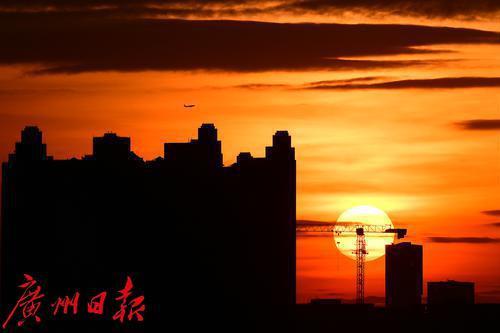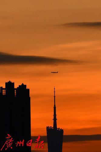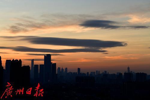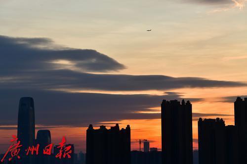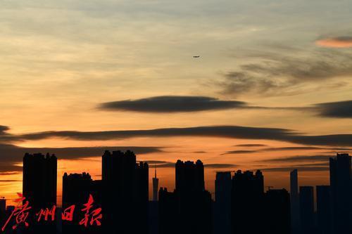 10月25日,随着夕阳缓缓落下,广州的天际出现了迷人的晚霞,霞光映照万里,广州的天空被染成了一片金黄色。