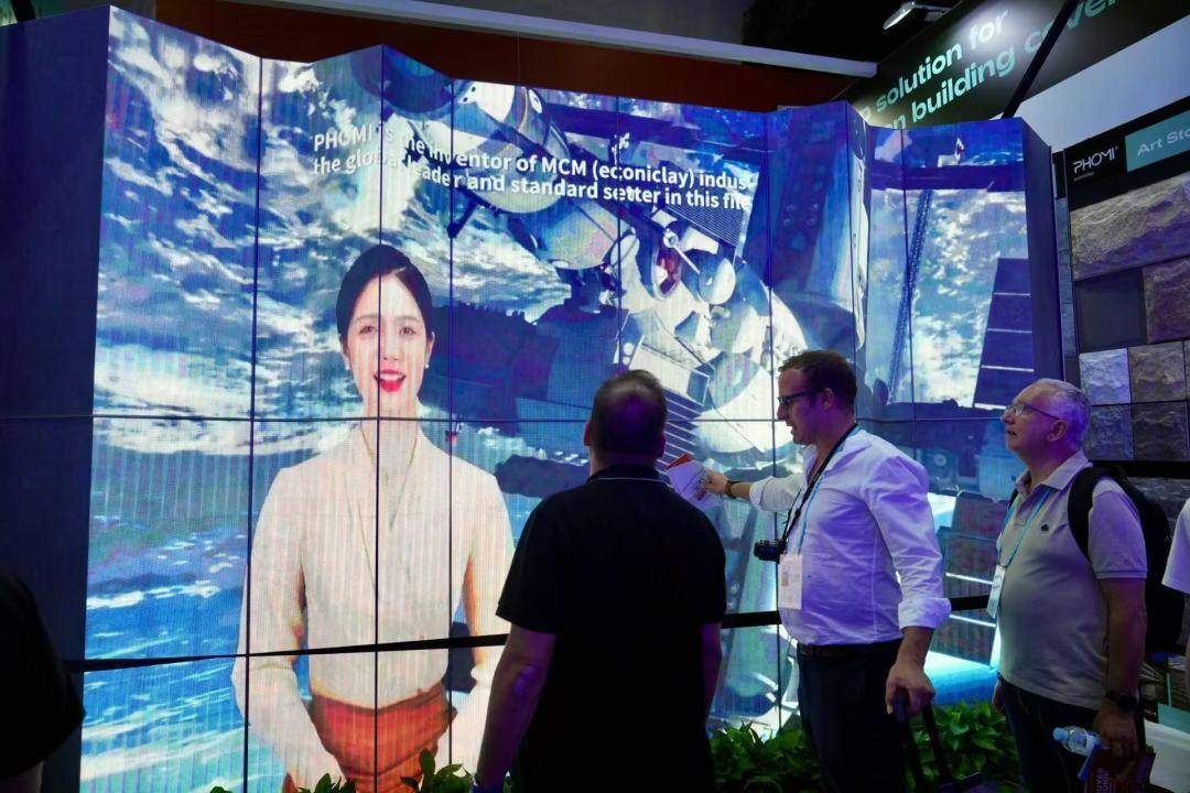 “这真的不是投影吗?”“这个是作为内墙还是外墙呀?”广西福美新材料有限公司展位上,不少外国采购商看到一个正在“播放”视频的墙体后不禁发问。