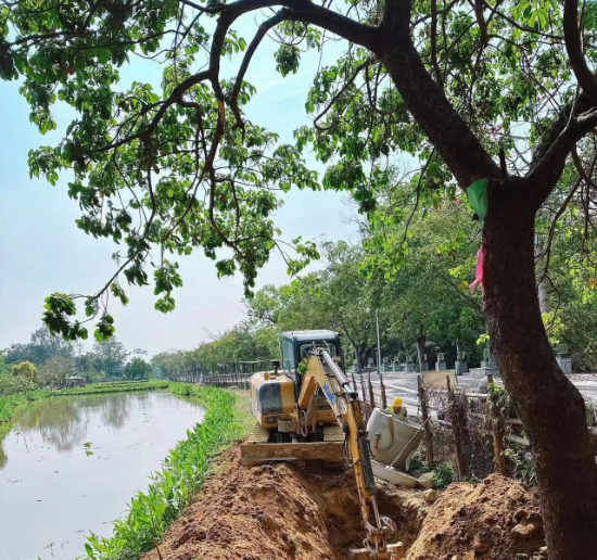 农村生活污水治理工程已于2023年底全面完工,其中旗溪村累计完成污水支管3.4km,田心村完成污水支管2.6km,石井村控虾村担水坑村完成污水支管2.3km。