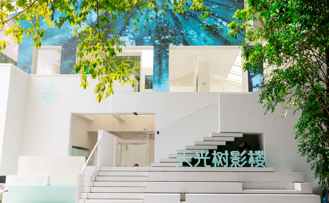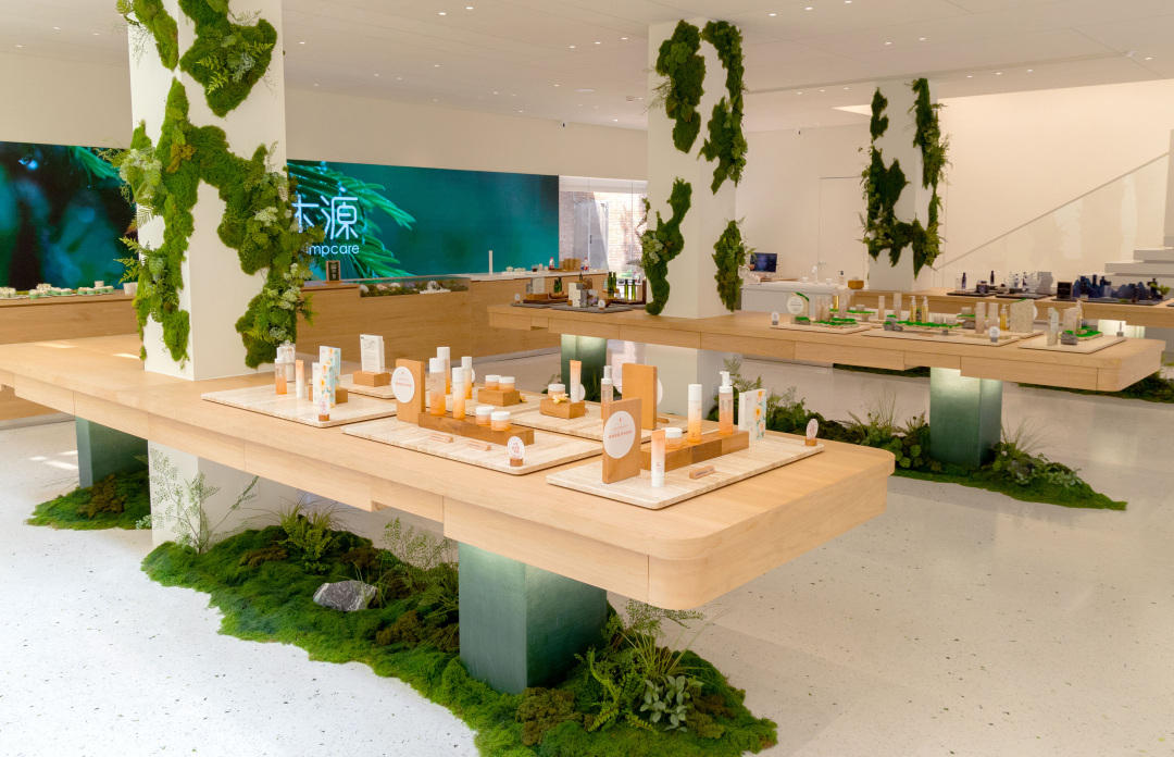 据了解,该门店的大楼以“天光树影”为灵感,重新定义了人与自然、艺术与生活的界限。溪木源透露,这家首家旗舰店在设计上就融入了很多环保理念,不仅选用了可持续再生的材料,地面也是由回收的愈创木水乳包装重塑而成的。