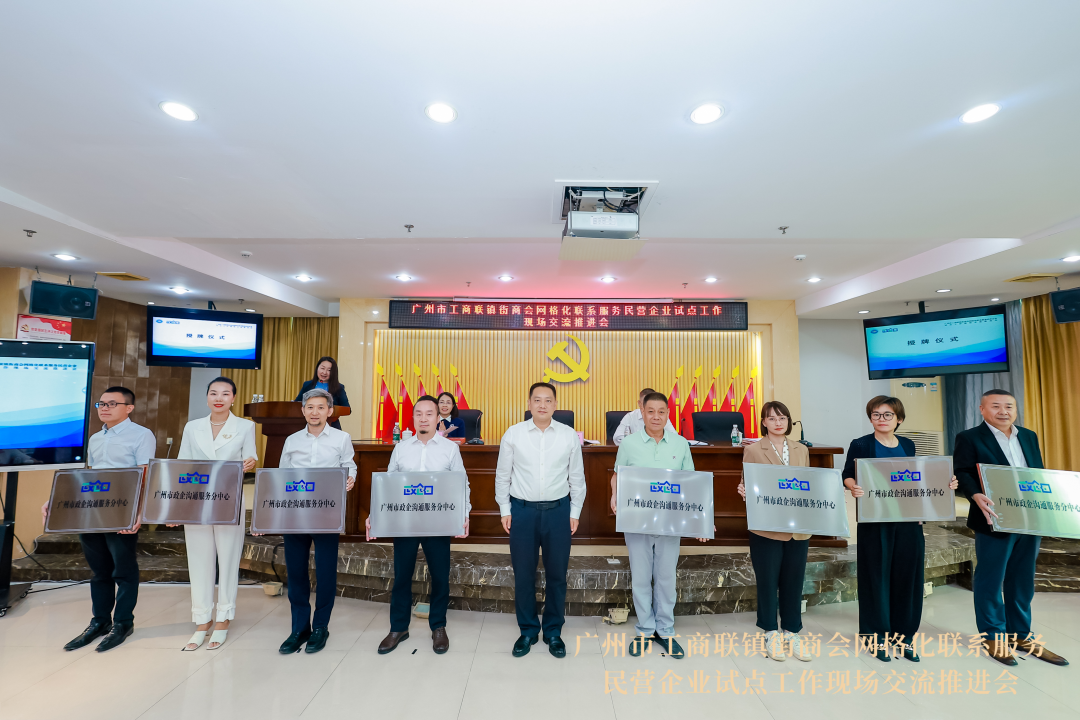 会上,16家试点商会获颁政企服务分中心牌匾。市促进民营经济发展中心对全市试点工作推进情况进行了介绍。越秀区、白云区作为区工商联代表,番禺区南村总商会、南沙区东涌镇商会作为试点商会代表,天河区冼村街道、番禺区南村镇作为镇街党委政府代表,对推进试点工作过程中的实践经验和特色做法进行了交流分享。