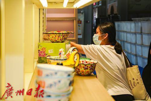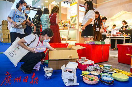 10月27日,广交会二期结束。在一个陶瓷厂家的展位上,工作人员一边打包展品,一边摆出部分样品“清尾货”,不少人路过被精美的陶瓷碗、杯吸引,在此停留,开启“扫尾货”模式。