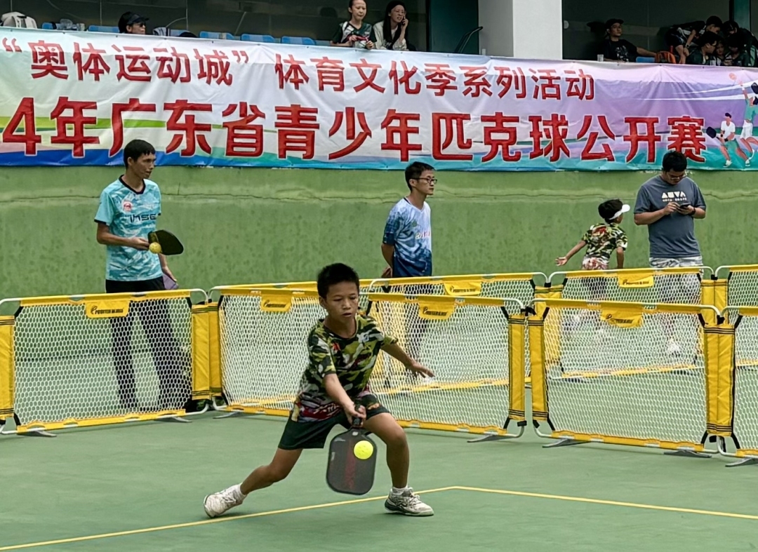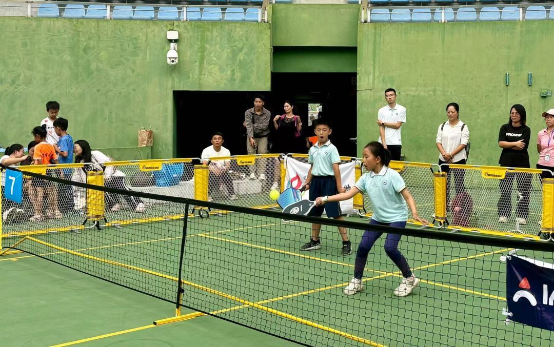 目前,广东奥体中心部分场馆正在紧张进行十五运升级改造工作,仅有网球中心对外开放,中心想方设法最大限度利用有限的空间开展全民健身服务,实现场馆围蔽施工服务不停摆。从“奥体杯”匹克球精英赛团体赛、全国匹克球大赛到今天的青少年匹克球公开赛等,正是中心打造匹克球品牌项目的有力举措。新兴的匹克球运动近年来在中国迅猛发展,十分出圈,它集羽毛球、乒乓球、网球运动于一身,最重要的是易上手、有趣,老少咸宜,对场地的要求不高,更富有体验感和社交属性,成为“体育赛事三进”的新宠。广东奥体中心正是看中这样的项目价值,期待通过匹克球运动更好传播体育文化。