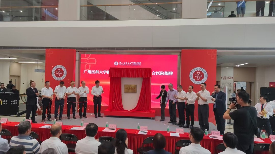 “3、2、1,揭牌!”10月26日,广州医科大学附属第四医院举行三级甲等综合医院揭牌仪式,标志着该院成为广州市增城区首家独立建制的“三甲”综合医院。现场播放了共和国勋章获得者、中国工程院院士、广州国家实验室主任钟南山发来的祝贺视频。