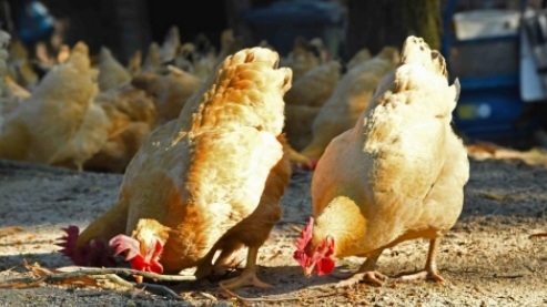 近日,记者在广州市花都区梯面镇埔岭村百果园林山庄看到,村民在这里养殖了数千只金黄色的生态艾草鸡。