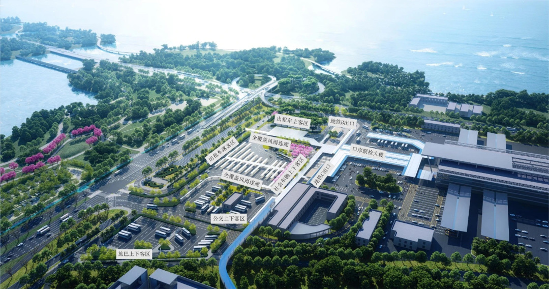 增设约1350米全覆盖式风雨连廊,衔接人行天桥、落客区、上客区、深圳湾口岸旅检大楼及深圳地铁13号线深圳湾口岸站地铁口;