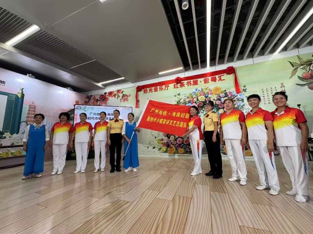 为倡导“一杯茶、一本书、一家人”的家庭生活方式,发动广大妇女儿童家庭共读红色经典、唱响红色歌曲、陶冶爱国情操、传承良好家风,为共同推动全民阅读和家庭文化进地铁,结合广州地铁打造的“湾区轨道文化长廊”品牌建设,海珠区妇女联合会与广东城际铁路运营有限公司携手共建,打造出“拾光音乐厅 红茶书屋·音粤汇”这个崭新的文化空间,据介绍,这是一个集音乐、艺术、阅读、非遗、联谊交流等于一体的综合性轻生活文化空间,也是一个红色文化和家庭文化传播的重要阵地。