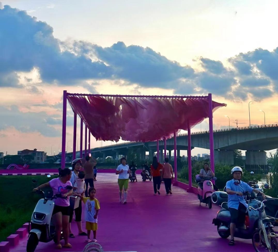 高新沙水库是国家工程的重要结点,“地胆”高沙村也被推上了大舞台。今年7月6日,“环球乐无界,启迪身心灵”2024休闲骑行暨助推“百千万工程”活动在高沙村成功举行。原本计划开放200个名额的水库线路骑行团,最后来了500多人。岛上的自然风光和水文化设施经过骑行者朋友圈传播后,村干部告诉记者,现在每天都有许多人自发到这里骑行游玩,尤其晚上,来湖边散步的人很多,晚上卖烧烤的村民也多了,可以挣到额外收入了。“这里虽远离城区,但有高速路口,交通便利。岛上空气清新,路面都是新铺的柏油路,水库调压塔每晚亮灯,夜景美不胜收。”村干部说道。