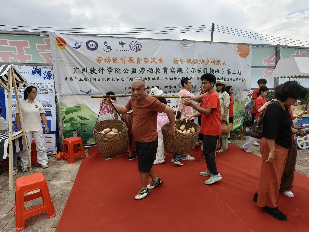 挖藕时节的黄溪村,热闹非凡,喜气洋洋。与会领导为“挖藕节”鸣锣开幕,从化区团委青工青农部曾婧璐部长和广州软件学院网络技术系党总支张卫香书记共同为黄溪村“挖藕节”鸣锣开幕,奏响了这场劳动盛宴的序曲。