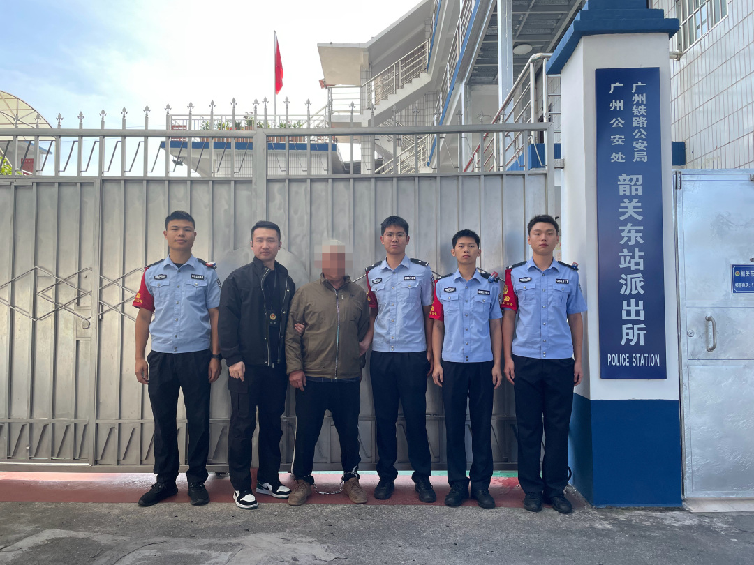 10月24日,广州铁路公安处韶关东站派出所接安徽省泗县公安局办案协查:白湖监狱一名脱逃29年的犯人刘某乘坐K1007次列车,将于当日8时11分许途经韶关东站。韶关东站派出所接报后立即组织警力前往站台,协助泗县警方开展查控。最终在K1007次列车停靠韶关东站后,刘某下站台抽烟时被民警发现,警方随即上前将其抓获。