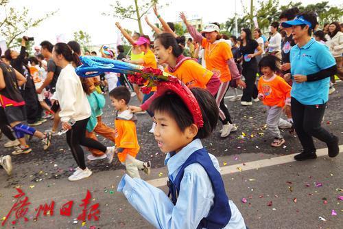 增城区仙村镇“助力百千万,仙村跑起来”西南基岗站清早鸣枪开跑。