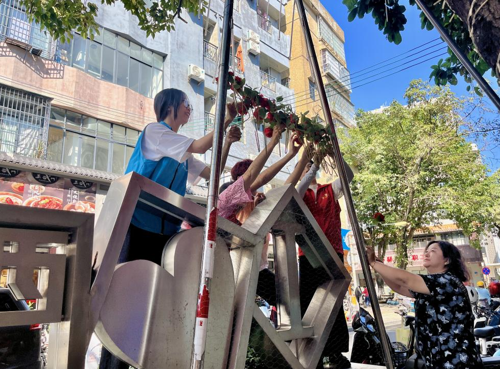 10月25日,大市社区党委携手市桥街“双百工程”中北片社工站、广州市紫羽文化艺术传播有限公司,以及社区党员和志愿者,共同在大南路打造了一处独具特色的玫瑰花墙打卡点。这一创新举措不仅为市桥街增添了一道亮丽的风景线,更为推动当地文化旅游事业注入了新的活力。
