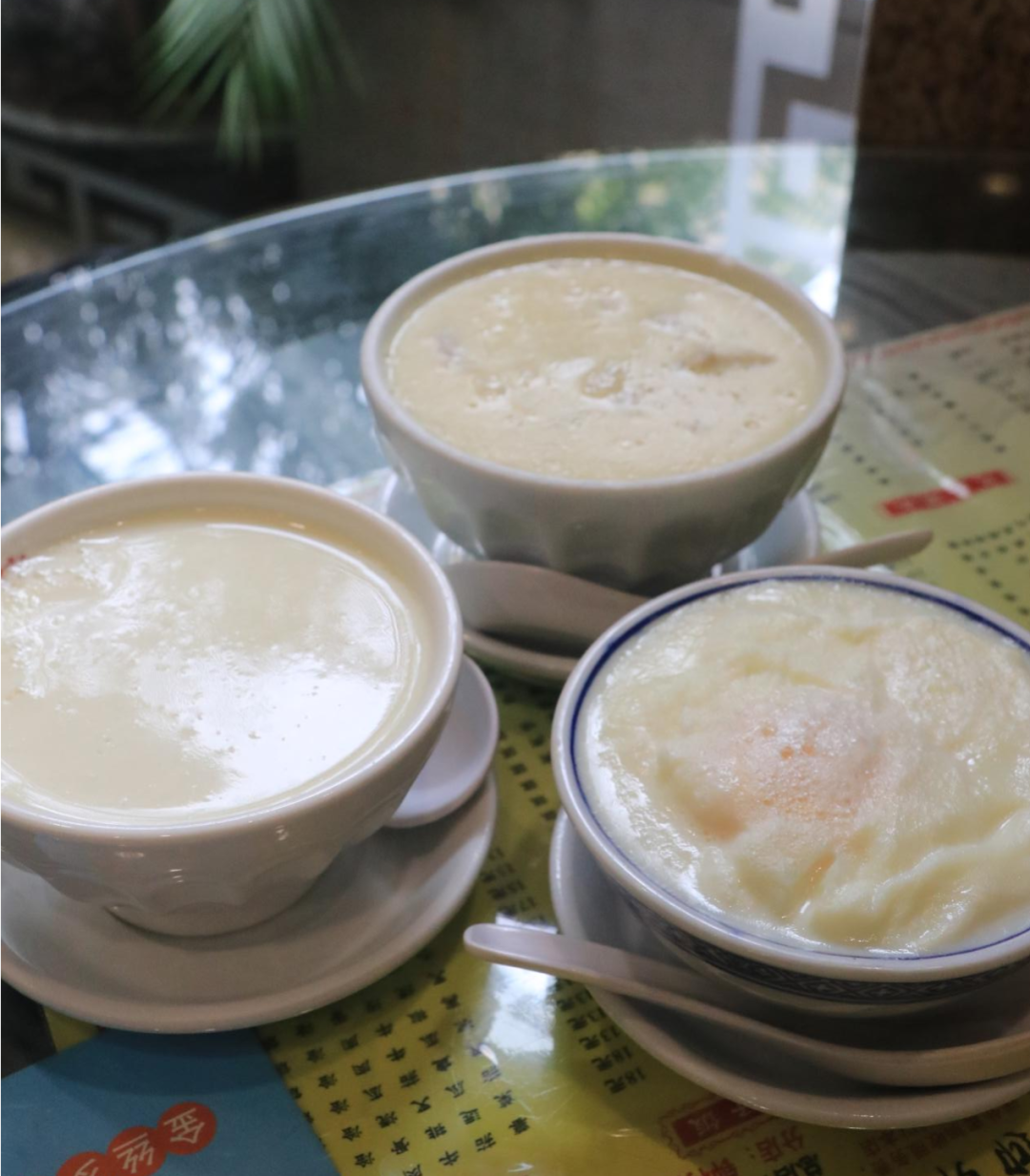 健民牛奶甜品店的双皮奶,香芋炒奶蛋、正宗姜撞奶。
