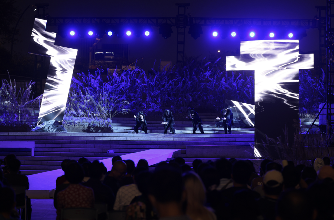 而卢晓洋、邓诗琪、宾少妍、周鹏 、王丹丹五位舞者则扮演“时间旅者”这一穿梭在不同空间的人物形象,他们既有台词,也有肢体语言,对剧中角色的演绎让观众产生了想象的空间,特别是他们的舞蹈,自身就是叙述。
