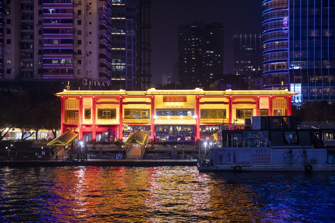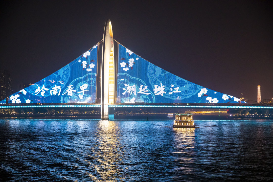 在沿岸灯景设计方面,坚持从水、岸、船、桥等要素整体谋划,推动景观优化联动和效果改造,打造广州特色主题光影秀。目前,市住建局结合全运会城市品质提升工作,优化加快编制《广州照明品质提升专项工作方案》,加强景观照明设计,进一步完善“一带两轴多节点”的夜景照明格局。2024年广州国际灯光节正在积极推进,争取通过灯光节推进珠江沿岸景观增添商业性灯光魅力,提升珠江游服务体验。