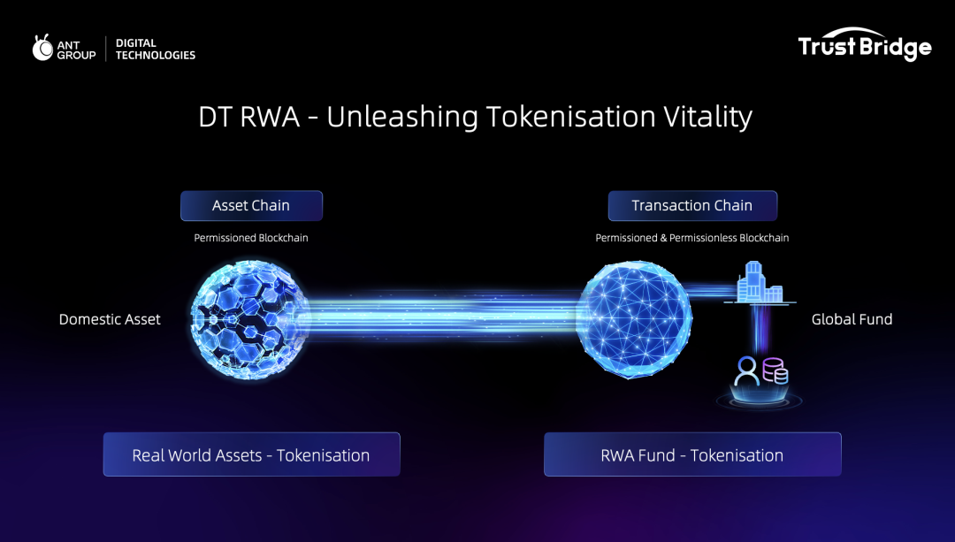 10月28日,第九届香港金融科技周开幕,在主题为“Trust Bridge”的论坛上,蚂蚁数科旗下蚂蚁链在此次金融科技周首次公开了其为RWA业务打造的“两链一桥”平台,旨在帮助更多内地新能源资产赴港RWA(真实世界资产),实现技术赋能实体资产。