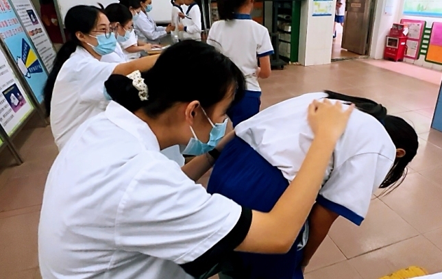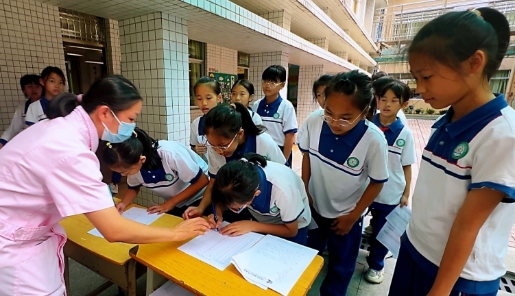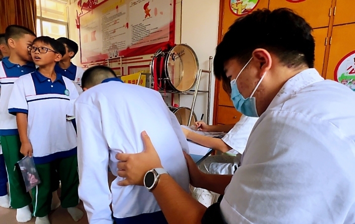 记者在筛查现场看到,学生有序排队,依次进行筛查。医务人员耐心询问学生身体健康状况、生活和学习习惯,通过眼观、手触、仪器测量等方式,引导学生做出规定动作,观察每一位学生是否存在脊柱侧弯现象,对其进行健康评估,写好记录、登记成册。同时,为学生普及相关健康知识,叮嘱学生日常注意事项,给予健康指导,引导学生养成健康生活、学习习惯。