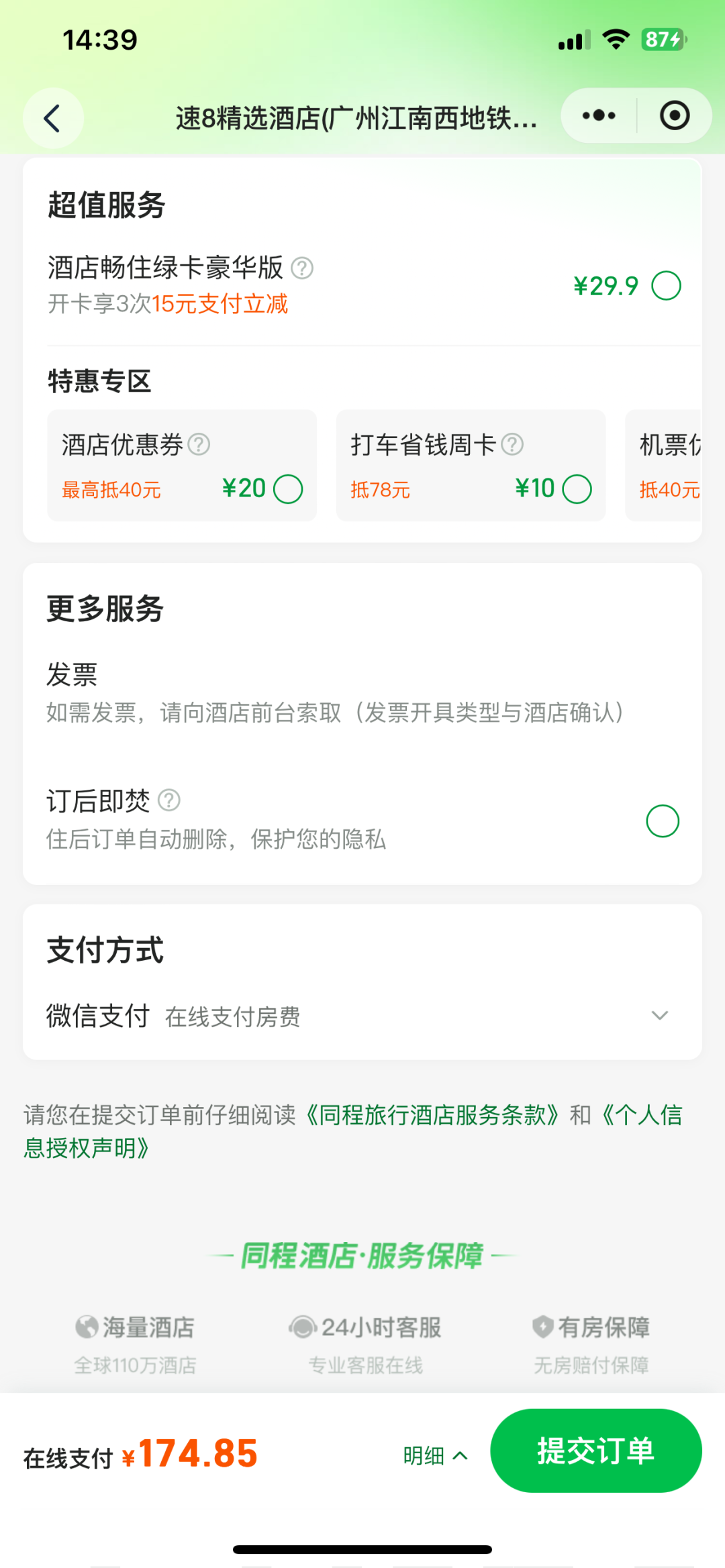 登录同程旅行小程序预订酒店时,提交订单的页面会显示“订后即焚”的选择功能。页面解释所谓“订后即焚”,就是“住后订单自动删除,保护您的隐私”。在该功能的详细说明中显示,“订后即焚”订单将会在成功入住后次日中午12点自动删除,消费者将无法看到订单预订记录且无法对酒店进行点评。同时,订单支付完成后,入住前订单最新状态只能在订单详情页中查看,不再发送短信和微信通知。