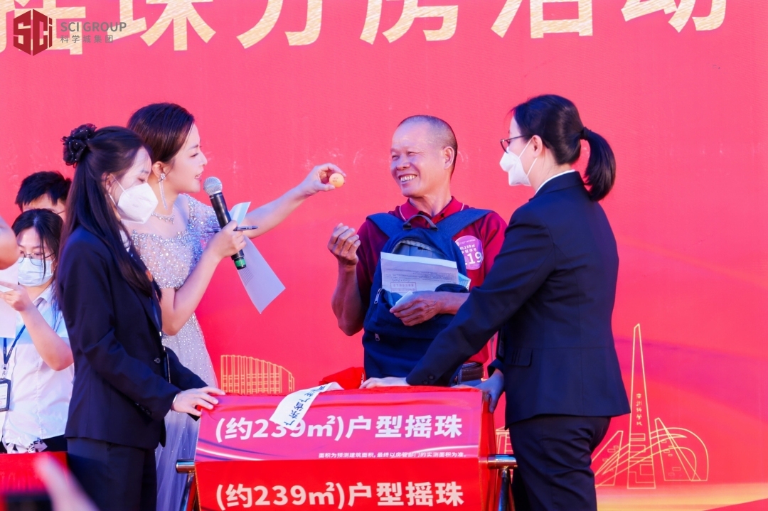 摇号过程由广州市黄埔公证处全程公证,村民按照顺序上台后,随机抽取号码球,全过程公正透明。“我们抽的是239㎡户型,有五个房,这样合适四世同堂。楼层在中间,全家人都很满意!”村民何先生喜悦之情溢于言表,一家人对新家充满了期盼。