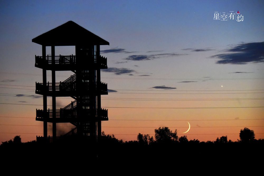 2024年9月5日在天津静海团泊湖拍摄的金星伴月。(杨婧摄)
