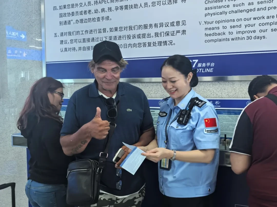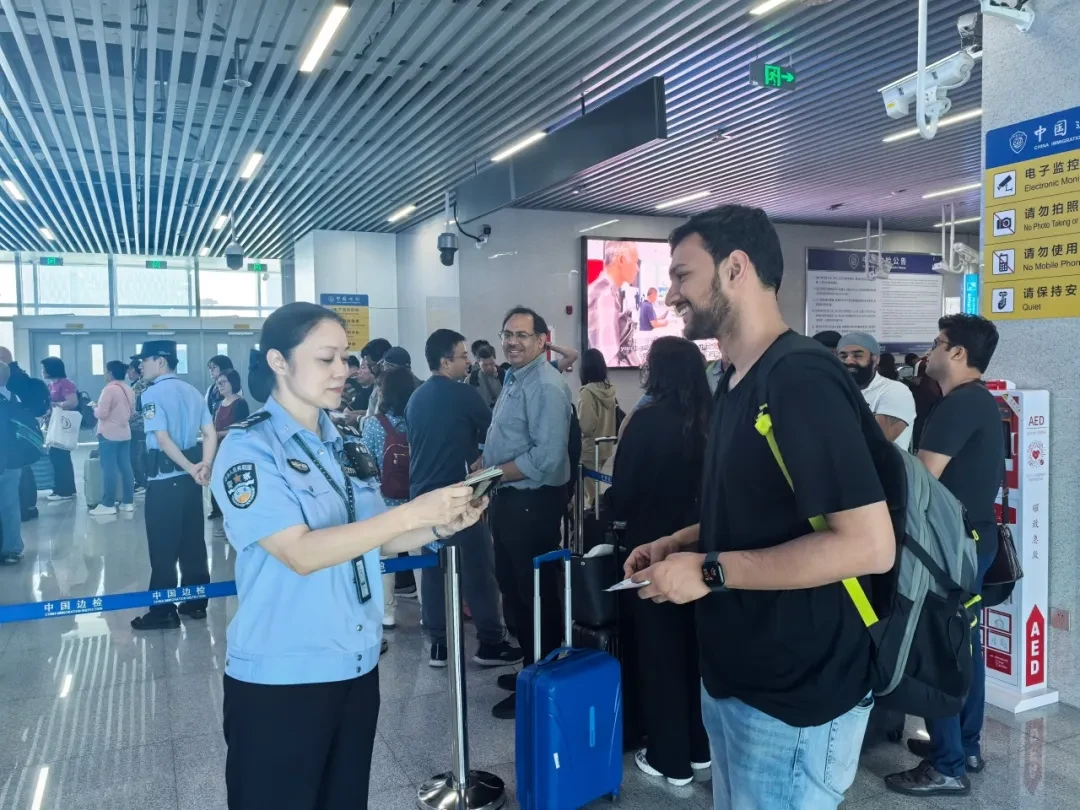 “您好,办理完边检手续,领取行李后,直走就可以看见在口岸设置的境外采购商远端办证点,提供相关材料即可现场办理。”在入境候检大厅,李媊耐心解答旅客咨询,协助填写入境卡,帮助外籍旅客前置指纹信息采集……