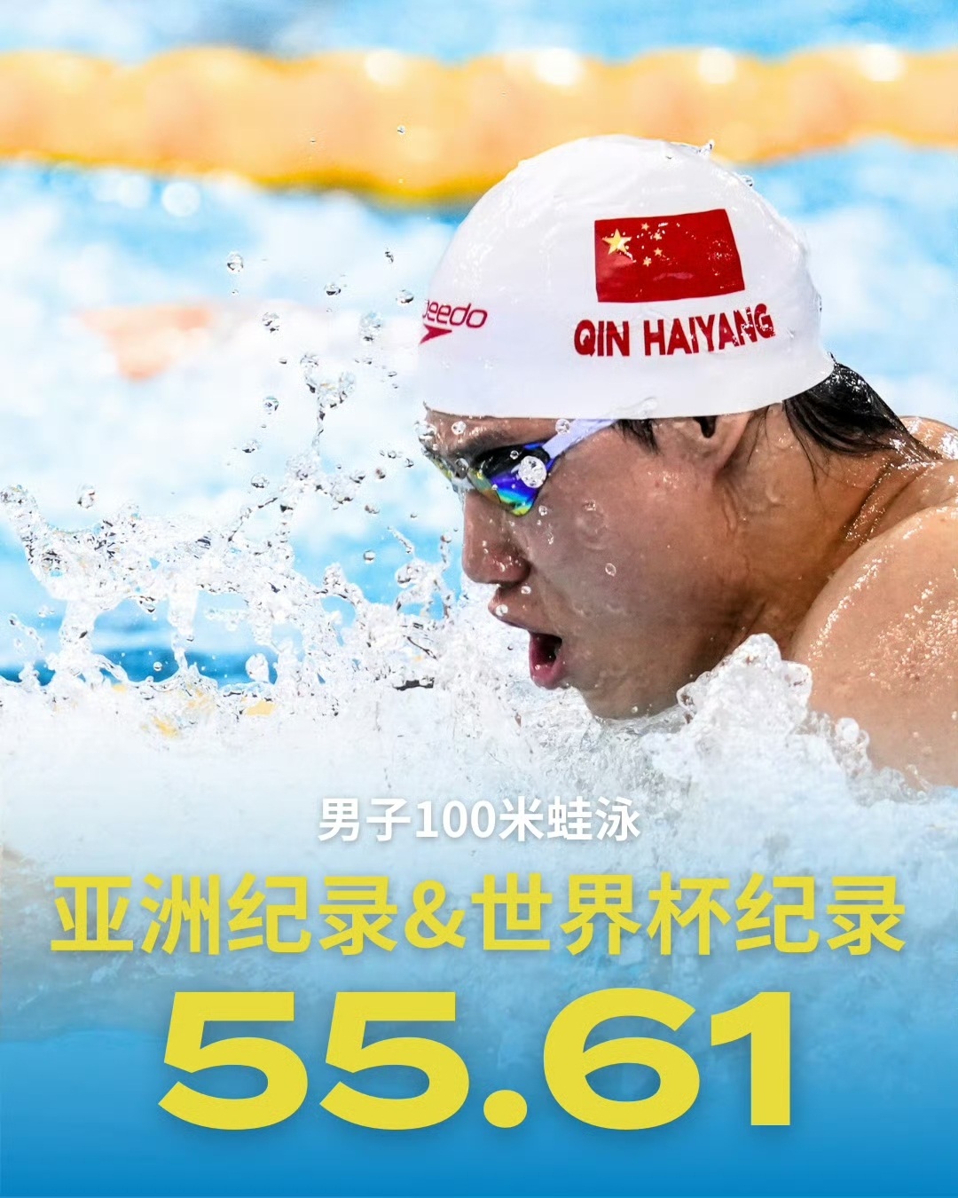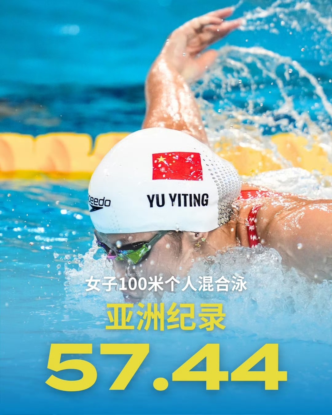 今晚其他较量,男子100米蛙泳决赛,覃海洋以55秒61拿到金牌,成绩平赛会纪录,并刷新亚洲纪录,今年的三站世界杯,覃海洋在该项目拿到2金1银,两次刷新亚洲纪录。女子50米自由泳决赛,杨浚瑄拿到第二名。女子100米混合泳决赛,余依婷获得亚军,并以57秒44的成绩刷新亚洲纪录,前纪录是余依婷本月在世界杯上海站中创造的。