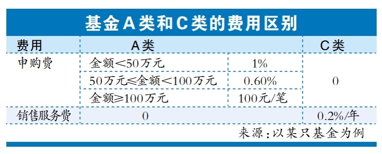 晨星(中国)基金研究中心高级分析师代景霞分析,一般来说,A份额和C份额主要差异是收费模式的不同,A份额采用收取前端认购/申购费的模式,但不计提销售服务费;C份额则不收取认购/申购费用,而采用收取销售服务费的模式。